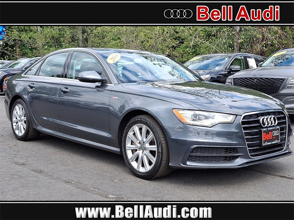 2014 Audi A6 3.0T Prestige quattro Daytona Gray Pearl Effect 3.0L TFSI V6 DOHC 8-Speed Automatic with Tiptronic quattro 18/27 City/Highway MPG 10 Speakers, 3-Step Heated Rear Seats, 4-Wheel Disc Brakes, 4-Zone Climate Control (9AQ), ABS brakes, Adaptive Headlights w/Halogen Cornering Lamps, Air Conditioning, Alloy wheels, AM/FM radio: SiriusXM, Ambient Lighting Plus - LED, Anti-whiplash front head restraints, Audi Side Assist w/Pre Sense Rear, Auto-dimming door mirrors, Auto-dimming Rear-View mirror, Automatic temperature control, Bose Sound System w/Subwoofer, Brake assist, Bumpers: body-color, CD player, Cold Weather Package, Compass, Delay-off headlights, Driver door bin, Driver vanity mirror, Dual front impact airbags, Dual front side impact airbags, DVD-Audio, Electronic Stability Control, Exterior Parking Camera Rear, Four wheel independent suspension, Front anti-roll bar, Front Bucket Seats, Front Center Armrest w/Storage, Front dual zone A/C, Front fog lights, Front reading lights, Front Seat Ventilation, Garage door transmitter: HomeLink, Genuine wood console insert, Genuine wood dashboard insert, Genuine wood door panel insert, Heated door mirrors, Heated front seats, Heated Power Comfort Front Seats, Heated Steering Wheel, High intensity discharge headlights: Xenon plus, HVAC memory, Illuminated entry, Knee airbag, Leather Seating Surfaces, Leather steering wheel, Low tire pressure warning, Memory seat, Navigation System, Occupant sensing airbag, Outside temperature display, Overhead airbag, Panic alarm, Passenger door bin, Passenger vanity mirror, Power Adjustable Steering Column w/Memory, Power door mirrors, Power driver seat, Power Folding Mirrors, Power moonroof, Power passenger seat, Power steering, Power windows, Prestige Package, Radio data system, Radio: Multi Media Interface (MMI) Navigation Plus, Rain sensing wipers, Rear air conditioning, Rear anti-roll bar, Rear fog lights, Rear reading lights, Rear seat center armrest, Rear window defroster, Remote keyless entry, S Line Exterior, Security system, Speed control, Speed-sensing steering, Speed-Sensitive Wipers, Split folding rear seat, Steering wheel mounted audio controls, Tachometer, Telescoping steering wheel, Tilt steering wheel, Traction control, Trip computer, Turn signal indicator mirrors, Variably intermittent wipers, Wheels: 18" 5-V-Spoke-Design.