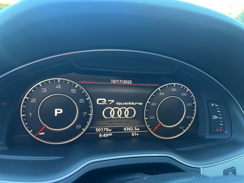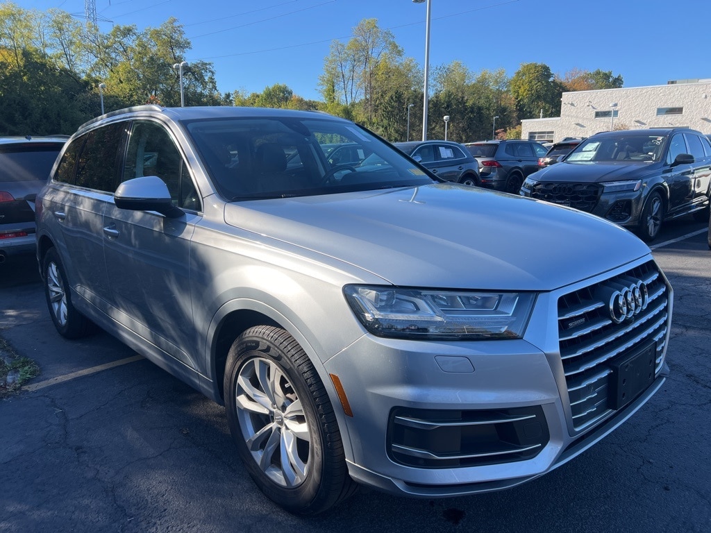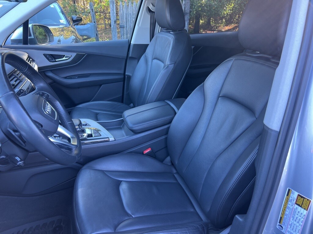 2019 Audi Q7 45 Premium quattro Florett Silver Metallic Odometer is 29250 miles below market average! Clean CARFAX. 2.0L 4-Cylinder TFSI 8-Speed Automatic with Tiptronic quattro 3rd Row Seat, Backup Camera, Quattro AWD, 10 Speakers, 3-Spoke Multifunction Steering Wheel w/Paddles, 3.76 Axle Ratio, 3rd row seats: bench, 4-Wheel Disc Brakes, ABS brakes, Alloy wheels, AM/FM radio: SiriusXM, Brake assist, CD player, Cold Weather Package, Delay-off headlights, Diamond Silver Finish/Gray Oak Wood Inlays, Dual front impact airbags, Dual front side impact airbags, Electronic Stability Control, Emergency communication system: Audi connect CARE, Exterior Parking Camera Rear, Four wheel independent suspension, Front & Rear Doors Audi Beam-Rings, Front anti-roll bar, Front dual zone A/C, Front fog lights, Fully automatic headlights, Genuine wood dashboard insert, Genuine wood door panel insert, Heated door mirrors, Heated Front Bucket Seats, Heated Rear Seats, High intensity discharge headlights: Xenon plus, Leather Seating Surfaces, Leather Shift Knob, Leather steering wheel, Low tire pressure warning, Navigation system: MMI Navigation plus, Occupant sensing airbag, Overhead airbag, Power door mirrors, Power driver seat, Power Liftgate, Power moonroof, Power passenger seat, Radio: Audi MMI Navigation Plus, Rear anti-roll bar, Rear fog lights, Rear Load Sill/Door Cup/Door Edge Paint Protection, Remote keyless entry, Speed-sensing steering, Split folding rear seat, Steering wheel mounted audio controls, Traction control, Turn signal indicator mirrors, Wheels: 18" 5-Arm Design.