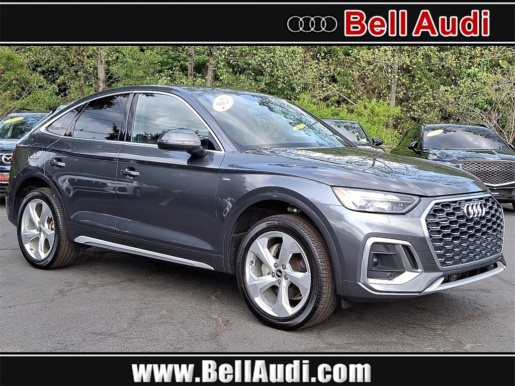 2021 Audi Q5 Sportback 45 Premium quattro Daytona Gray Pearl Effect CARFAX One-Owner. Clean CARFAX. 2.0L Turbocharged 7-Speed Automatic S tronic quattro 23/28 City/Highway MPG Backup Camera, Quattro AWD, 10 Speakers, 4-Wheel Disc Brakes, ABS brakes, Air Conditioning, Alloy wheels, AM/FM radio, Audi Advanced Key, Auto High-beam Headlights, Auto-Dimming Power Folding Exterior Mirrors, Auto-dimming Rear-View mirror, Automatic temperature control, Brake assist, Bumpers: body-color, Compass, Convenience Package, Delay-off headlights, Driver door bin, Driver Seat Memory, Driver vanity mirror, Dual front impact airbags, Dual front side impact airbags, Electronic Stability Control, Emergency communication system: Audi connect CARE, Exterior Parking Camera Rear, Four wheel independent suspension, Front anti-roll bar, Front Bucket Seats, Front Center Armrest, Front dual zone A/C, Front fog lights, Front reading lights, Garage door transmitter: HomeLink, Genuine wood console insert, Genuine wood dashboard insert, Genuine wood door panel insert, Heated 8-Way Power Front Bucket Sport Seats, Heated door mirrors, Heated front seats, Heated Steering Wheel, Illuminated entry, Leather Seating Surfaces, Leather Shift Knob, Low tire pressure warning, Occupant sensing airbag, Outside temperature display, Overhead airbag, Overhead console, Panic alarm, Passenger door bin, Passenger vanity mirror, Power door mirrors, Power driver seat, Power Liftgate, Power moonroof, Power passenger seat, Power steering, Power windows, Radio data system, Radio: Audi Sound System, Rain sensing wipers, Rear air conditioning, Rear anti-roll bar, Rear fog lights, Rear reading lights, Rear seat center armrest, Rear window defroster, Rear window wiper, Remote keyless entry, Security system, SiriusXM All Access Service, Speed control, Speed-sensing steering, Speed-Sensitive Wipers, Split folding rear seat, Spoiler, Steering wheel mounted audio controls, Tachometer, Telescoping steering wheel, Tilt steering wheel, Traction control, Trip computer, Turn signal indicator mirrors, Variably intermittent wipers, Wheels: 20" 5-Arm Design.