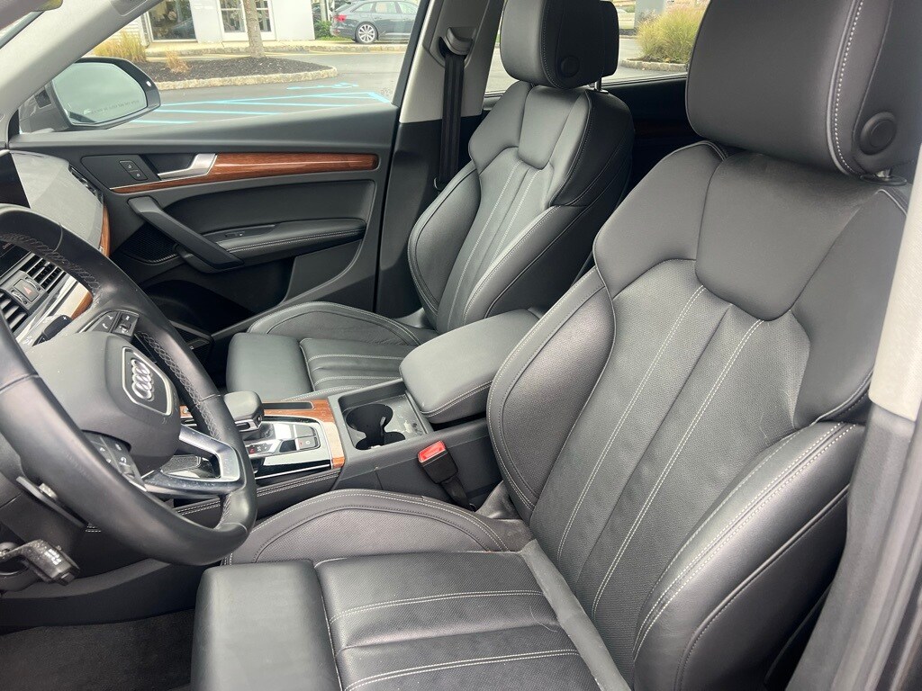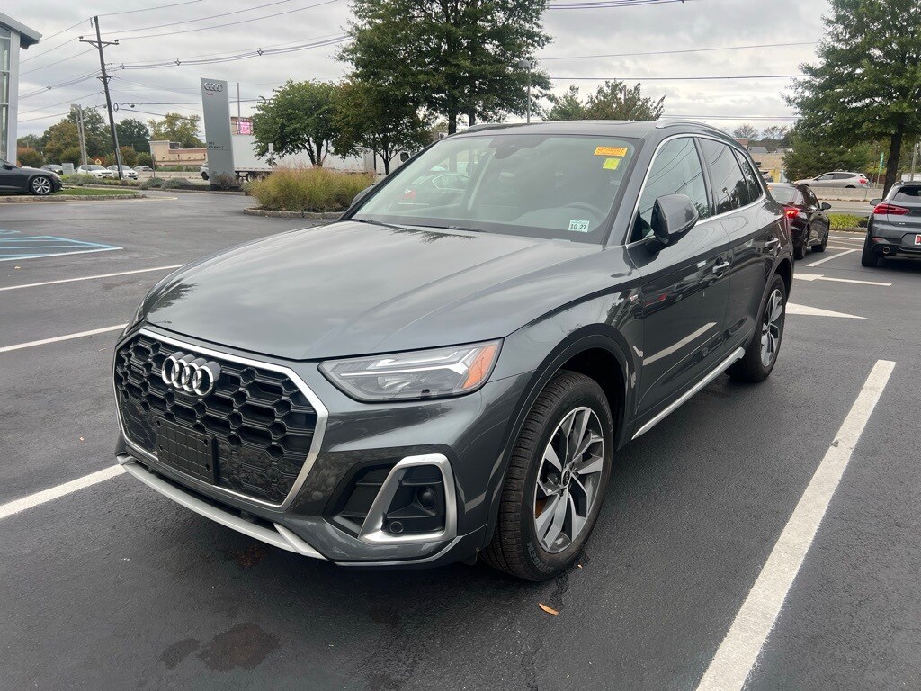2023 Audi Q5 45 S line Premium Plus quattro Daytona Gray Pearl Effect CARFAX One-Owner. Clean CARFAX. 2.0L Turbocharged 7-Speed Automatic S tronic quattro 22/29 City/Highway MPG Bluetooth, Hands-free, Backup Camera, Quattro AWD, 10 Speakers, 4-Wheel Disc Brakes, 5.302 Axle Ratio, ABS brakes, Air Conditioning, All-Weather Floor Mats, Alloy wheels, AM/FM radio, Audi Active Lane Assist, Audi Advanced Key, Audi Beam-Rings, Audi Connect PLUS, Audi Guard Protection Kit, Audi Guard Wheel Lock Kit, Audi Virtual Cockpit Plus, Auto-Dimming Power Folding Exterior Mirrors, Auto-dimming Rear-View mirror, Automatic temperature control, Bang & Olufsen Sound System w/3D Sound, Brake assist, Bumpers: body-color, Cargo Mat, Compass, Convenience Package, Delay-off headlights, Driver door bin, Driver Seat Memory, Driver vanity mirror, Dual front impact airbags, Dual front side impact airbags, Electronic Stability Control, Emergency communication system: Audi connect CARE, Exterior Parking Camera Rear, Four wheel independent suspension, Front anti-roll bar, Front Bucket Seats, Front Center Armrest, Front dual zone A/C, Front fog lights, Front reading lights, Garage door transmitter: HomeLink, Genuine wood console insert, Genuine wood dashboard insert, Genuine wood door panel insert, Hands-On Detection Steering Wheel, Heated 8-Way Power Front Bucket Seats, Heated door mirrors, Heated front seats, Heated Steering Wheel, Illuminated entry, Integrated Toll Module Delete (DISC), Leather Seating Surfaces, Leather Shift Knob, Leatherette Covered Center Console & Door Armrests, Low tire pressure warning, Manual Rear Side Window Sunshades, MMI Navigation Plus, Navigation Package, Occupant sensing airbag, Outside temperature display, Overhead airbag, Overhead console, Panic alarm, Panoramic Sunroof, Passenger door bin, Passenger vanity mirror, Power Adjustable Steering Column, Power door mirrors, Power driver seat, Power Liftgate, Power passenger seat, Power steering, Power windows, Premium Plus Package, Radio data system, Radio: Audi Sound System, Rain sensing wipers, Rear air conditioning, Rear anti-roll bar, Rear fog lights, Rear reading lights, Rear seat center armrest, Rear window defroster, Rear window wiper, Remote keyless entry, Roof rack, Security system, SiriusXM w/360L, Speed control, Speed-sensing steering, Speed-Sensitive Wipers, Split folding rear seat, Spoiler, Steering wheel mounted audio controls, Tachometer, Telescoping steering wheel, Tilt steering wheel, Top View Camera System, Traction control, Traffic Jam Assist, Trip computer, Turn signal indicator mirrors, Variably intermittent wipers, Ventilated Front Sport Seats w/4-Way Power Lumbar, Warm Weather Package, Wheels: 19" 5-Double-Arm Design Bi-Color Finish.