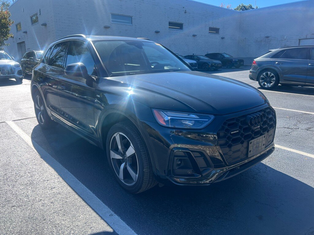 2023 Audi Q5 45 S line Premium quattro Mythos Black Metallic Odometer is 28654 miles below market average! CARFAX One-Owner. Clean CARFAX. 2.0L Turbocharged 7-Speed Automatic S tronic quattro 22/29 City/Highway MPG 10 Speakers, 4-Wheel Disc Brakes, 5.302 Axle Ratio, ABS brakes, Alloy wheels, AM/FM radio, Audi Active Lane Assist, Audi Advanced Key, Audi Beam-Rings, Audi Guard Wheel Lock Kit, Audi Virtual Cockpit Plus, Auto-Dimming Power Folding Exterior Mirrors, Bang & Olufsen Sound System w/3D Sound, Black Audi Rings & Badges, Black Exterior Trim, Black Optic Package, Black Roof Rails, Brake assist, Convenience Package, Driver Seat Memory, Dual front impact airbags, Dual front side impact airbags, Electronic Stability Control, Emergency communication system: Audi connect CARE, Front anti-roll bar, Front Bucket Seats, Front Center Armrest, Genuine wood console insert, Genuine wood dashboard insert, Genuine wood door panel insert, Gray-Brown Birch Natural Wood Inlays, Hands-On Detection Steering Wheel, Heated 8-Way Power Front Bucket Seats, Heated door mirrors, Heated front seats, Heated Steering Wheel, Illuminated entry, Leather Seating Surfaces, Leather Shift Knob, Leatherette Covered Center Console & Door Armrests, Low tire pressure warning, Occupant sensing airbag, Overhead airbag, Panoramic Sunroof, Power Adjustable Steering Column, Power door mirrors, Power Liftgate, Power passenger seat, Premium Plus Package, Rear anti-roll bar, SiriusXM w/360L, Split folding rear seat, Spoiler, Top View Camera System, Traffic Jam Assist, Trip computer, Turn signal indicator mirrors, Wheels: 20" 5-Arm Cutter Design, Bi-Color Finish.