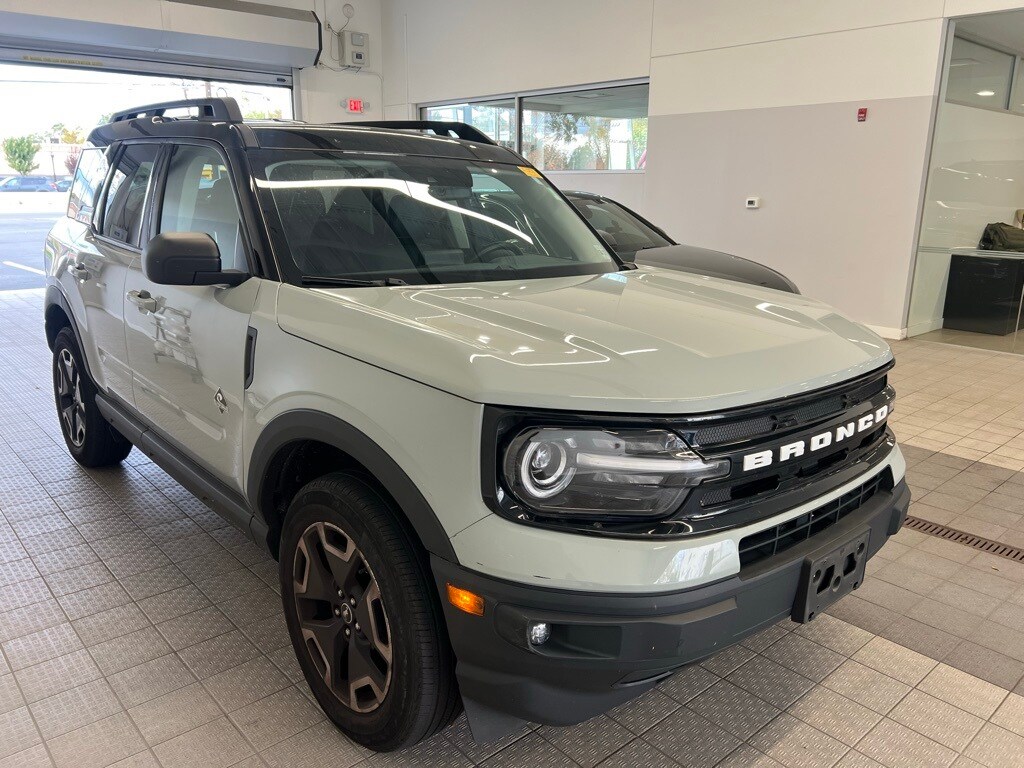 2022 Ford Bronco Sport Outer Banks Cactus Gray Priced below KBB Fair Purchase Price! CARFAX One-Owner. 1.5L EcoBoost 8-Speed Automatic 4WD 25/28 City/Highway MPG Equipment Group 300A, Wheels: 18" Ebony Black-Painted Aluminum.